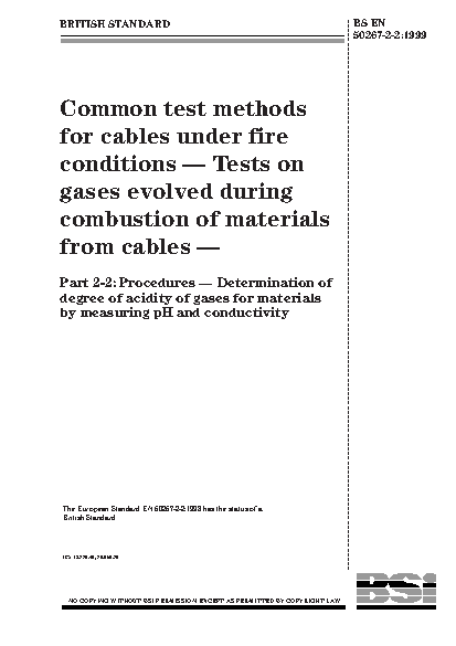 Common test methods for cables under fire conditions. Tests on gases evolved during combustion of materials from cables. Procedures Determination degree acidity by measuring pH and conductivity