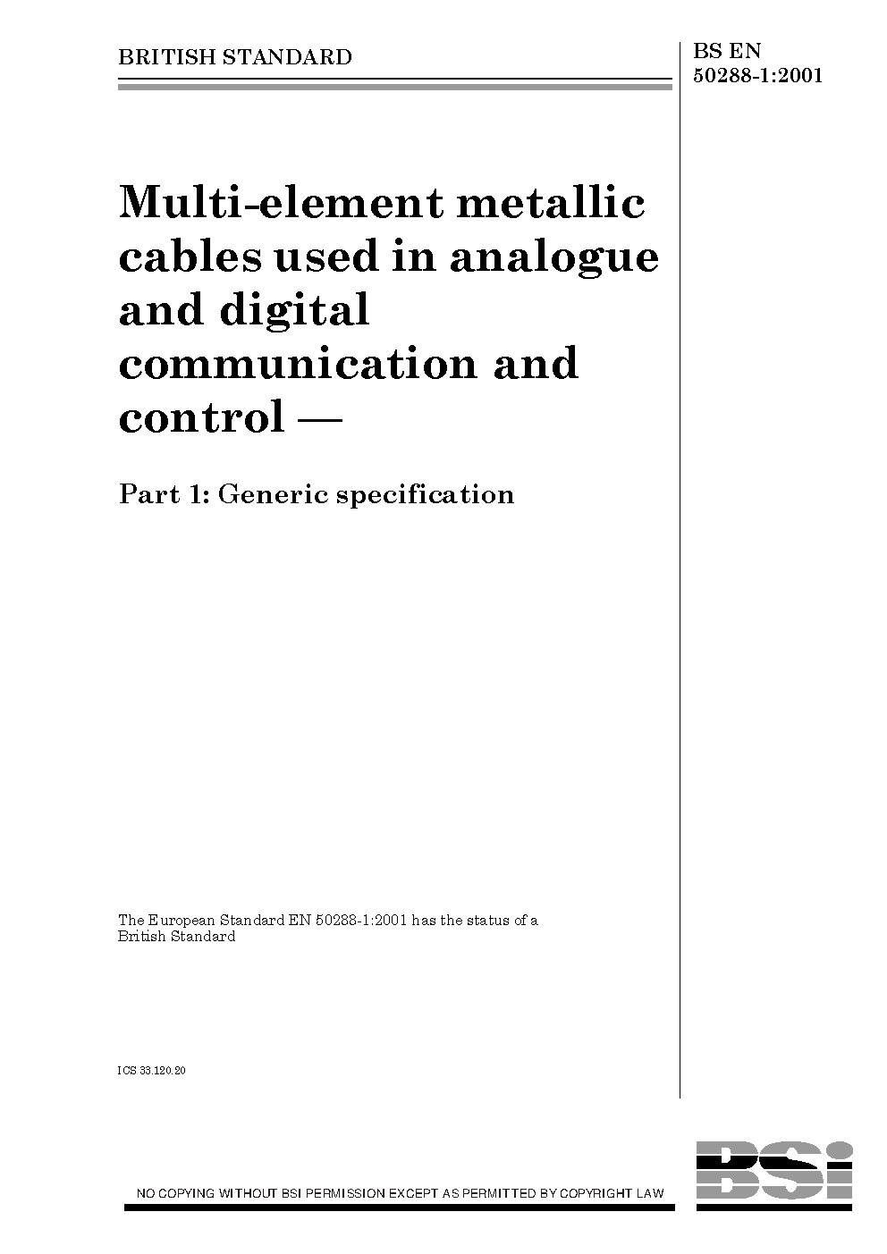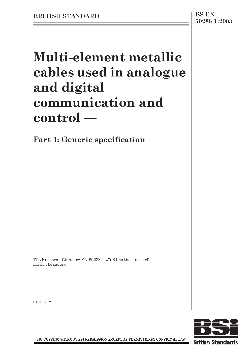 Multi-element metallic cables used in analogue and digital communication control Generic specification