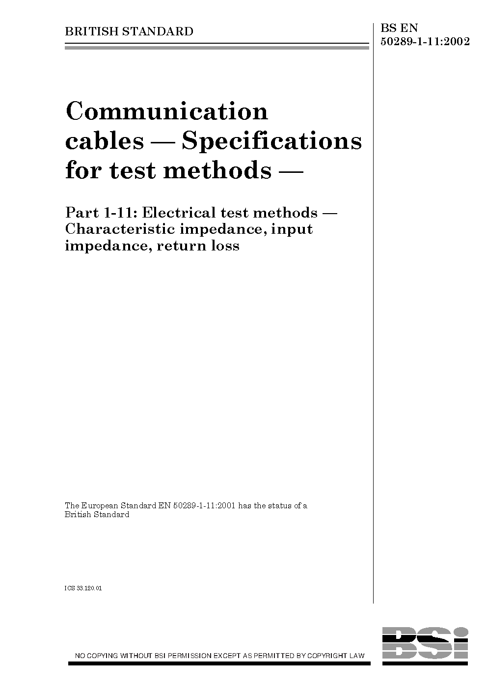 Communication cables. Specifications for test methods Electrical methods. Characteristic impedance, input return loss