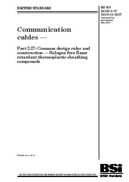 Communication cables Common design rules and construction. Halogen free flame retardant thermoplastic sheathing compounds