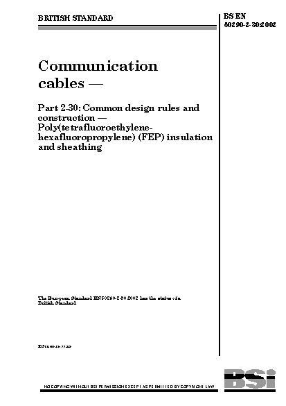 Communication cables. Common design rules and construction Poly(tetrafluoroethylene-hexafluoropropylene) (FEP) insulation sheathing