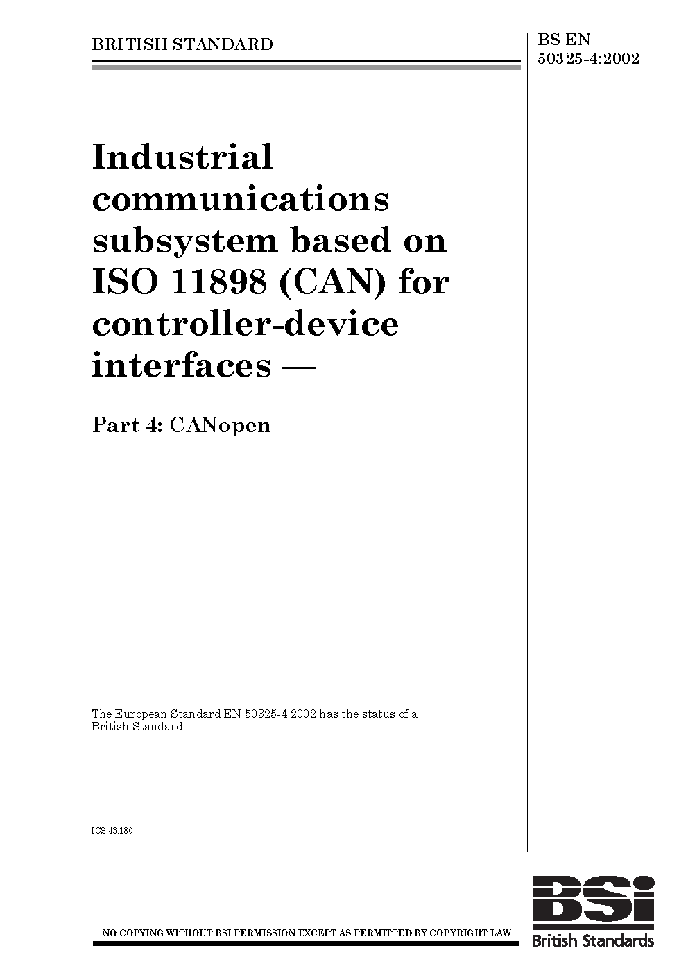 Industrial communication subsystem based on ISO 11898 (CAN) for controller-device interfaces CANopen