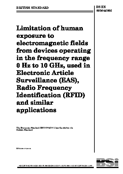 Product standard for human exposure to electromagnetic fields from devices operating in the frequency range 0 Hz to 300 GHz, used in Electronic Article Surveillance (EAS), Radio Frequency Identification (RFID) and similar applications
