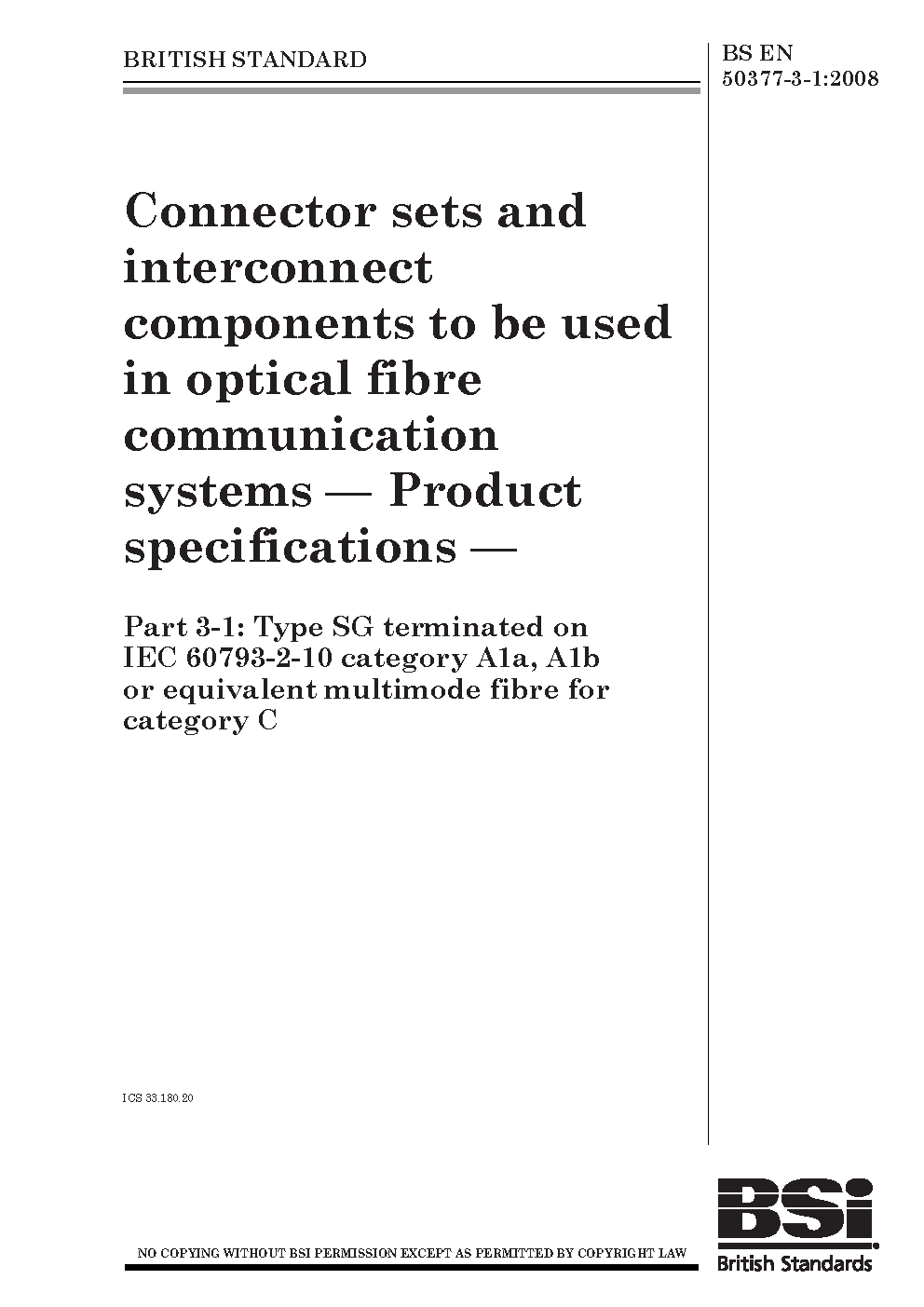 Connector sets and interconnect components to be used in optical fibre communication systems. Product specifications Type SG terminated on IEC 60793-2-10 category A1a, A1b or equivalent multimode for C