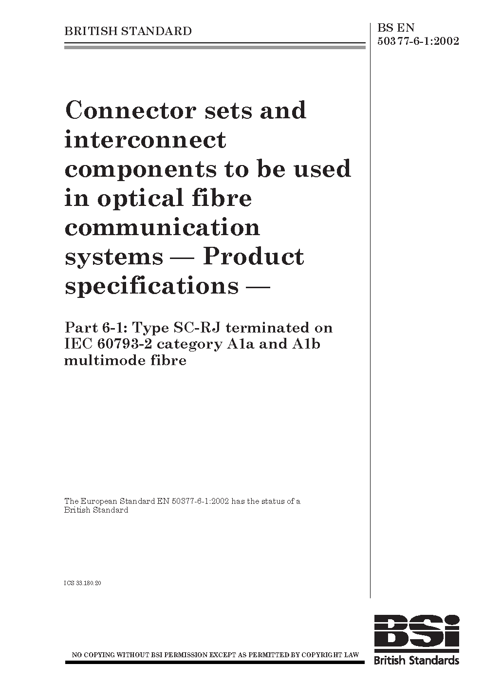 Connectors sets and interconnect components to be used in optical fibre communication systems. Product specifications Type SC-RJ terminated on IEC 60793-2 category A1a A1b multimode