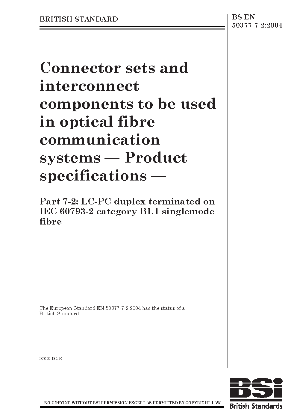 Connector sets and interconnect components to be used in optical fibre communication systems. Product specifications LC-PC duplex terminated on IEC 60793-2 category B1.1 singlemode