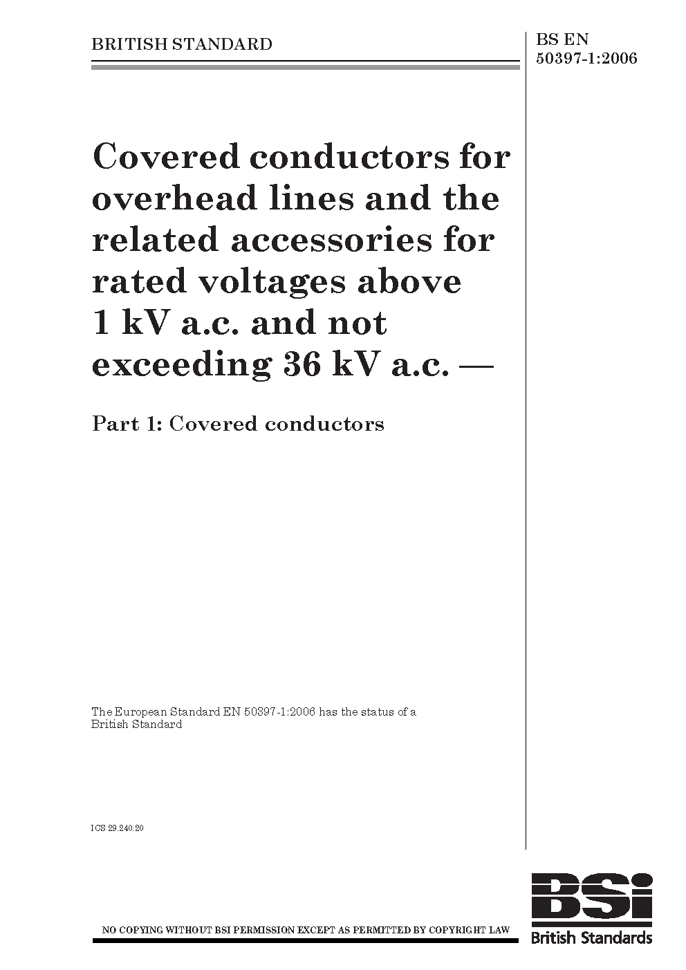Covered conductors for overhead lines and the related accessories rated voltages above 1 kV a.c. not exceeding 36 a.c