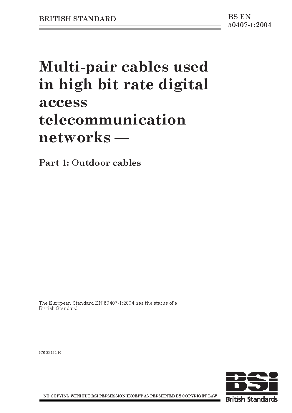 Communication equipment;Outdoor electric equipment;Data transmission;Multipair cables;Telecommunication;Bit rate;Communication networks;Multicore cables;Communication cables