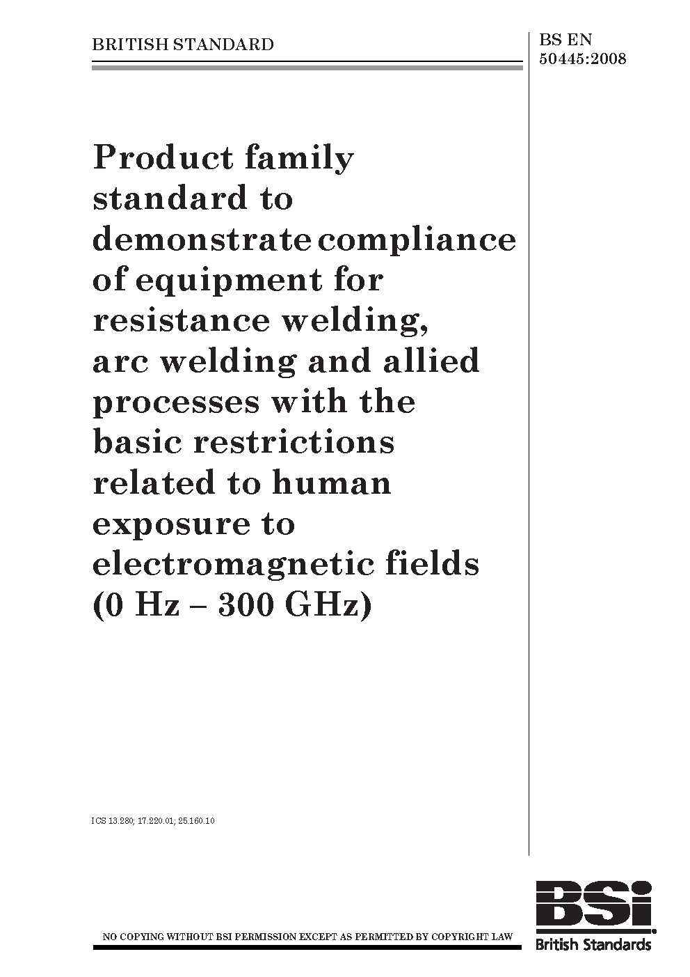 Product family standard to demonstrate compliance of equipment for resistance welding, arc welding and allied processes with the basic restrictions related to human exposure to electromagnetic fields (0 Hz - 300 GHz)