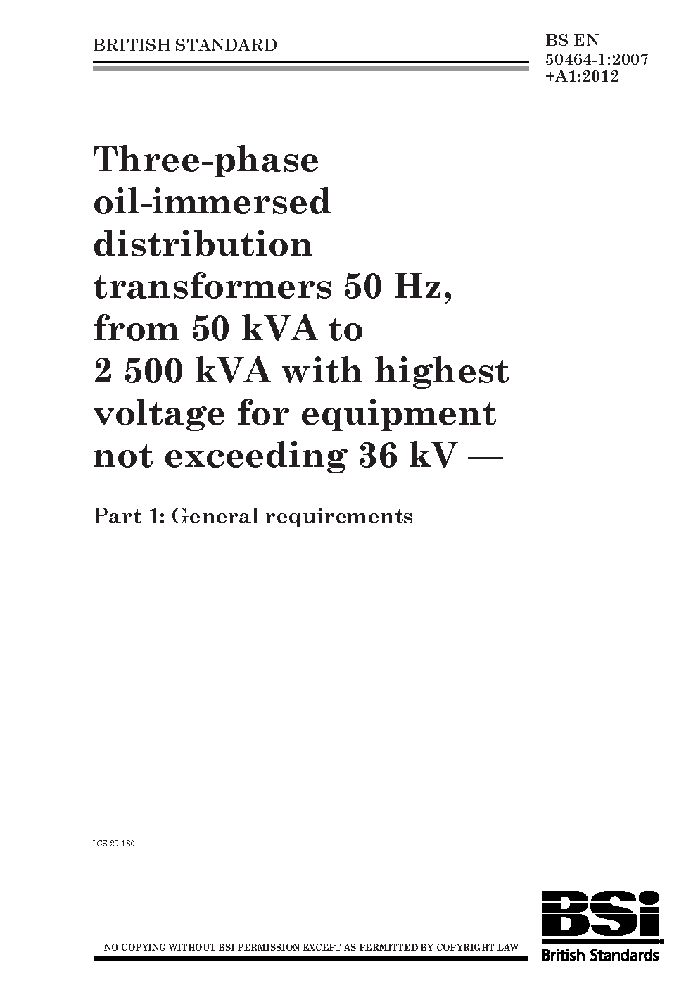 BS EN 50464-1:2007+A1:2012