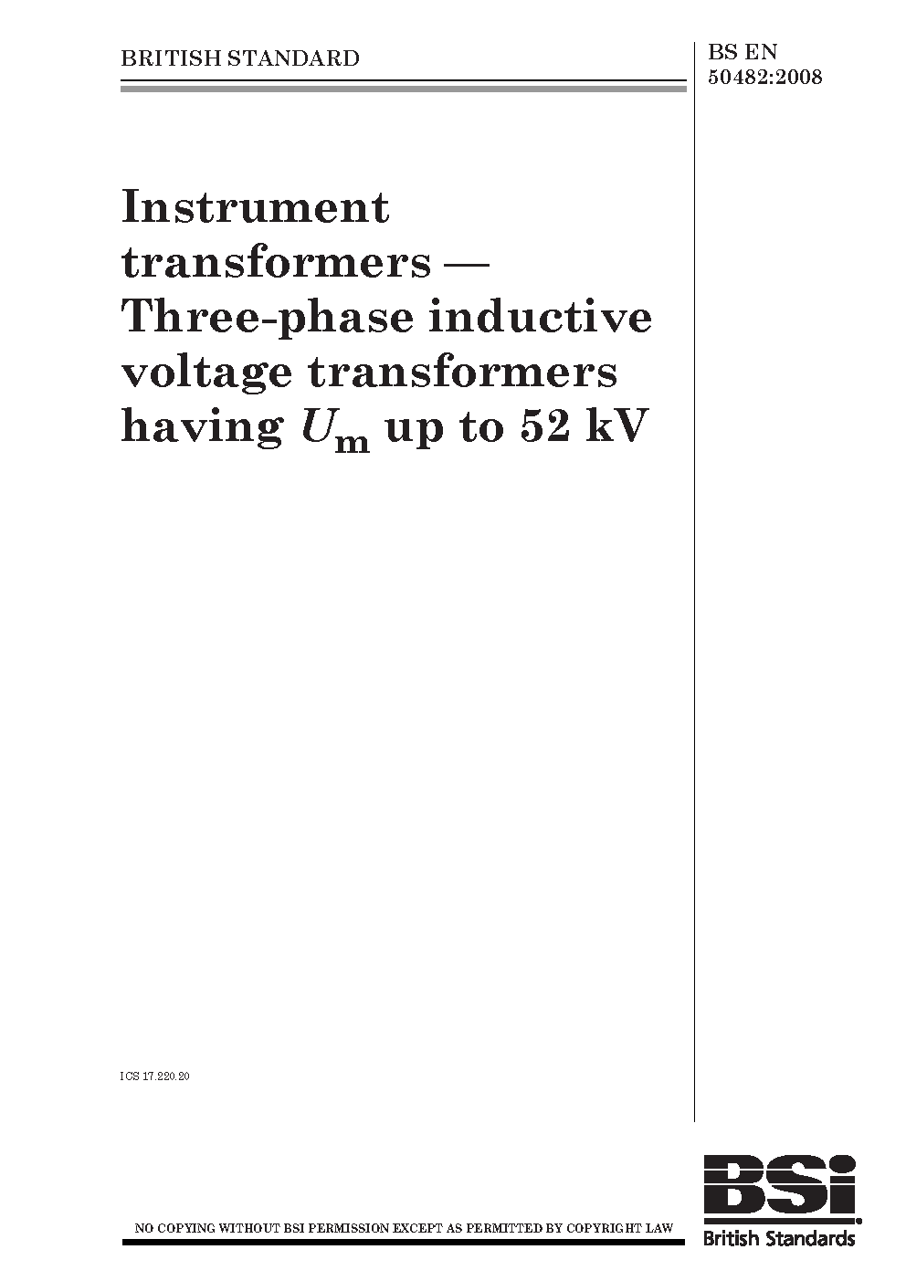 Instrument transformers. Three-phase inductive voltage transformers having Um up to 52kV