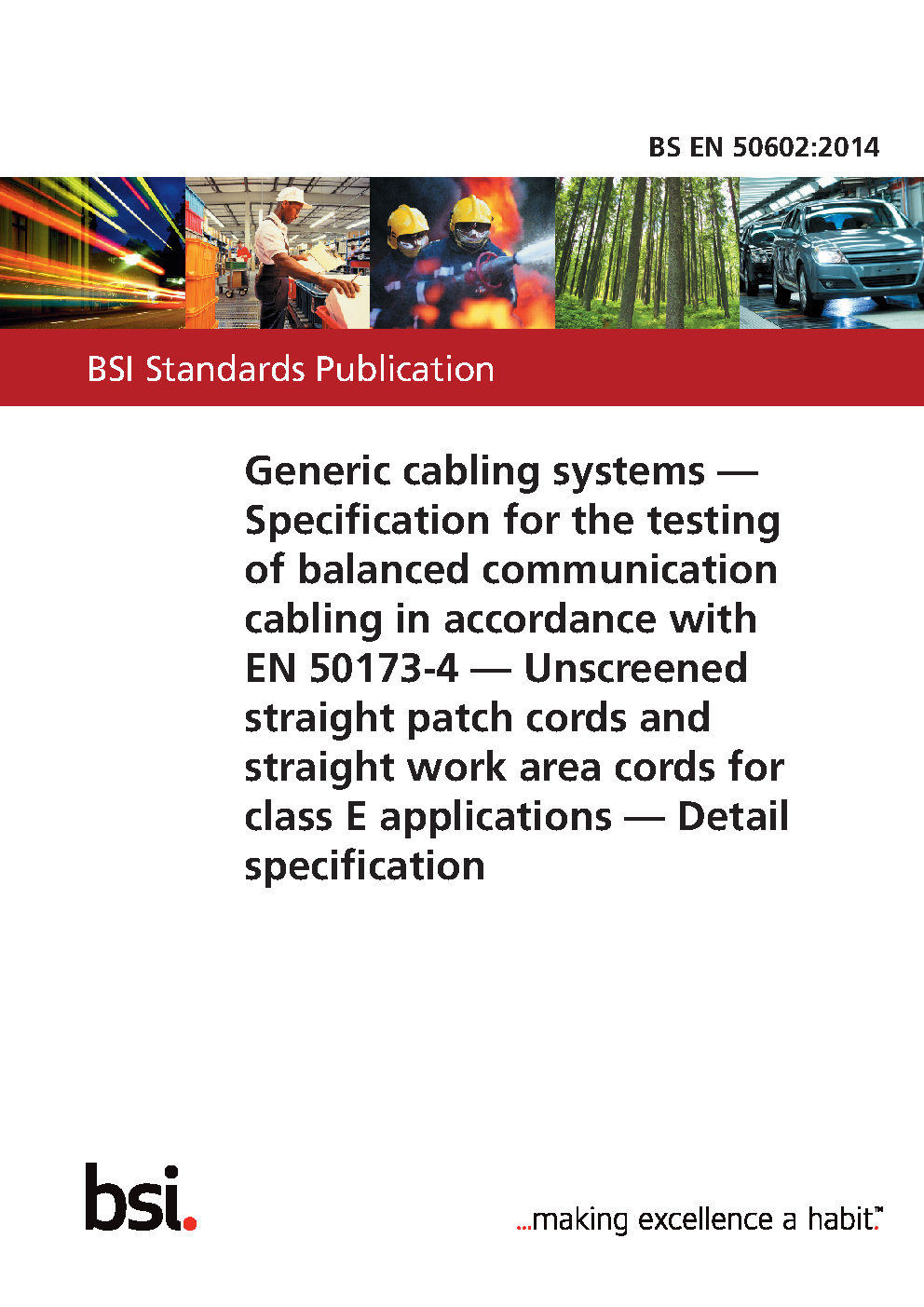 Generic cabling systems. Specification for the testing of balanced communication cabling in accordance with EN 50173-4. Unscreened straight patch cords and straight work area cords for class E applications. Detail specification