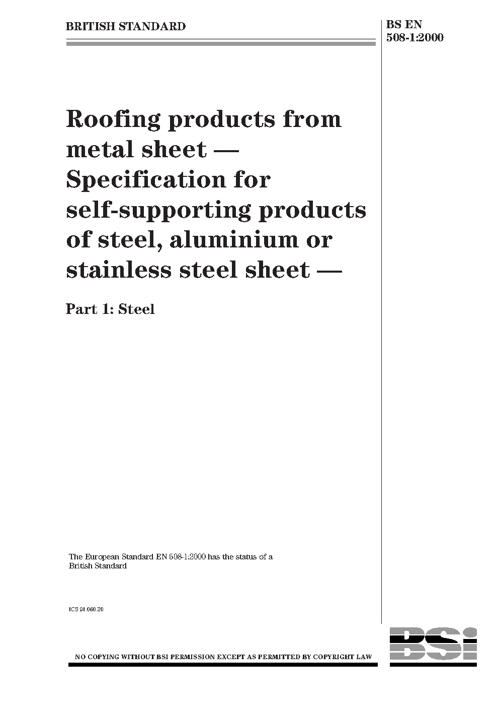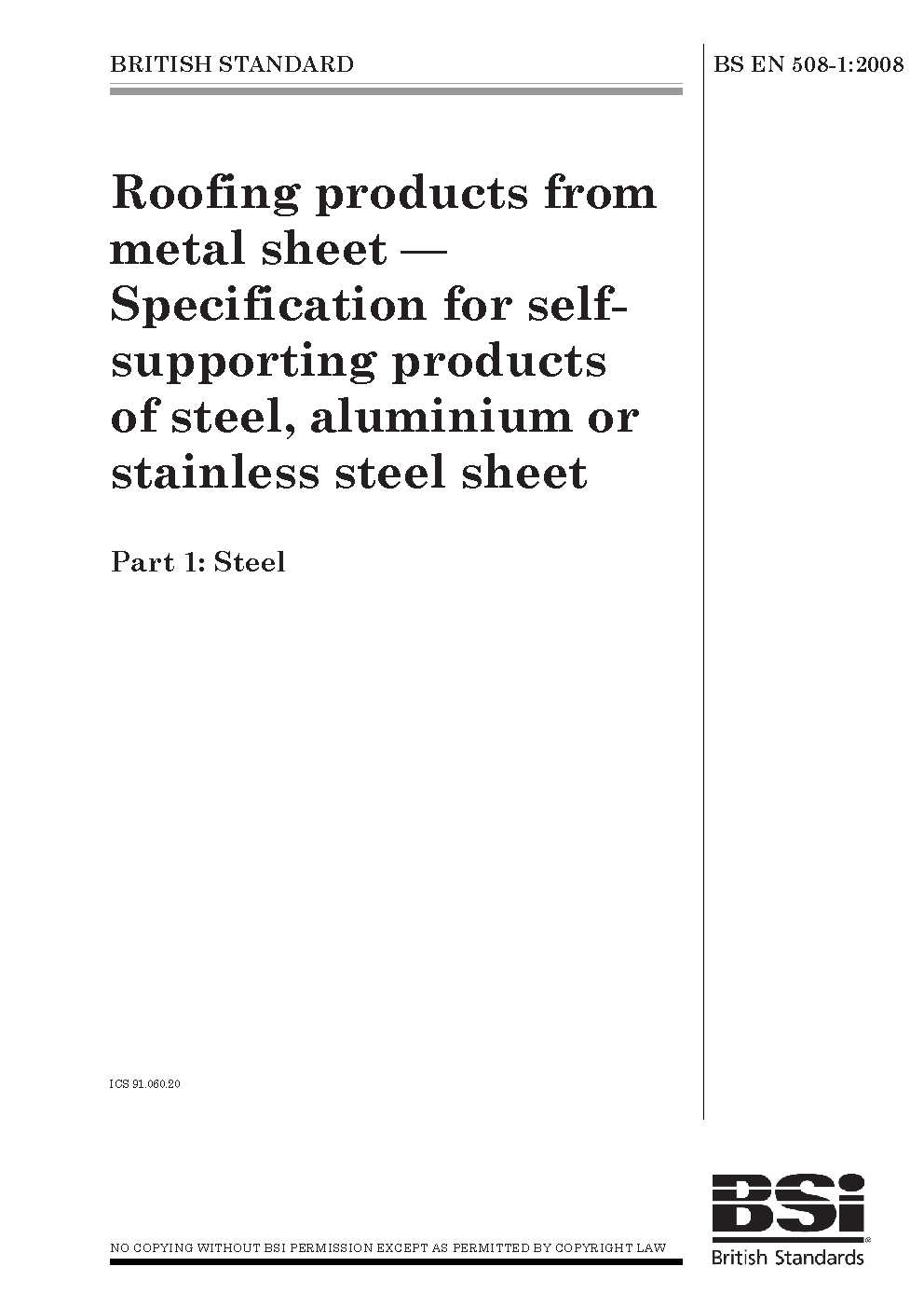 Roofing and cladding products from metal sheet. Specification for self-supporting of steel, aluminium or stainless steel sheet Steel