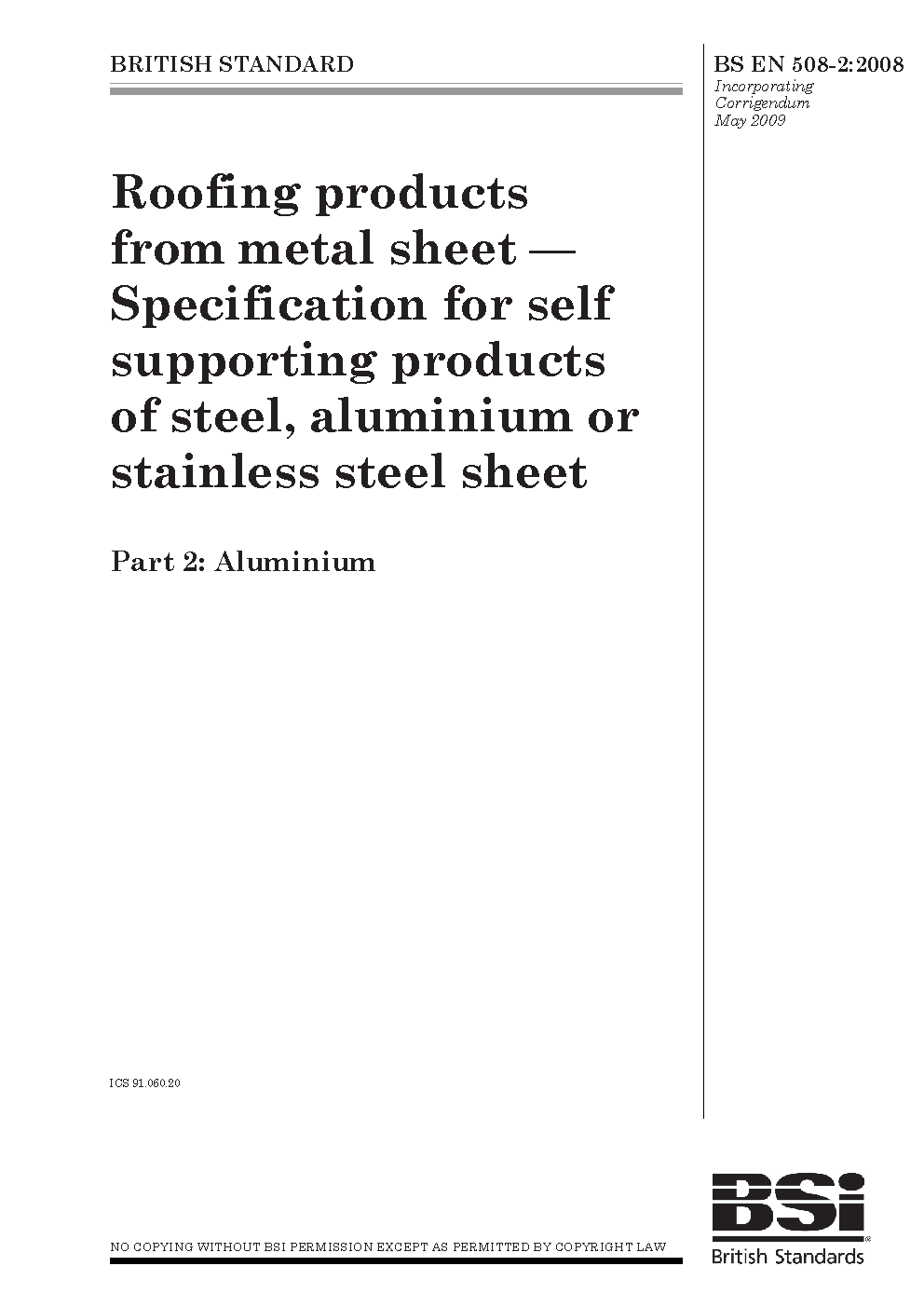 Roofing and cladding products from metal sheet. Specification for self-supporting of steel, aluminium or stainless steel sheet Aluminium