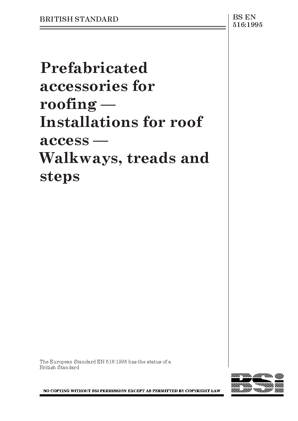 Quality control;Roofs;Steps (stairs);Conformity;Fatigue;Pitched roofs;Mechanical testing;Access fittings;Dimensions;Strength of materials;Fatigue testing;Static loading;Gangways (buildings);Instructions for use;Platforms;Treads (stairs);Classification systems