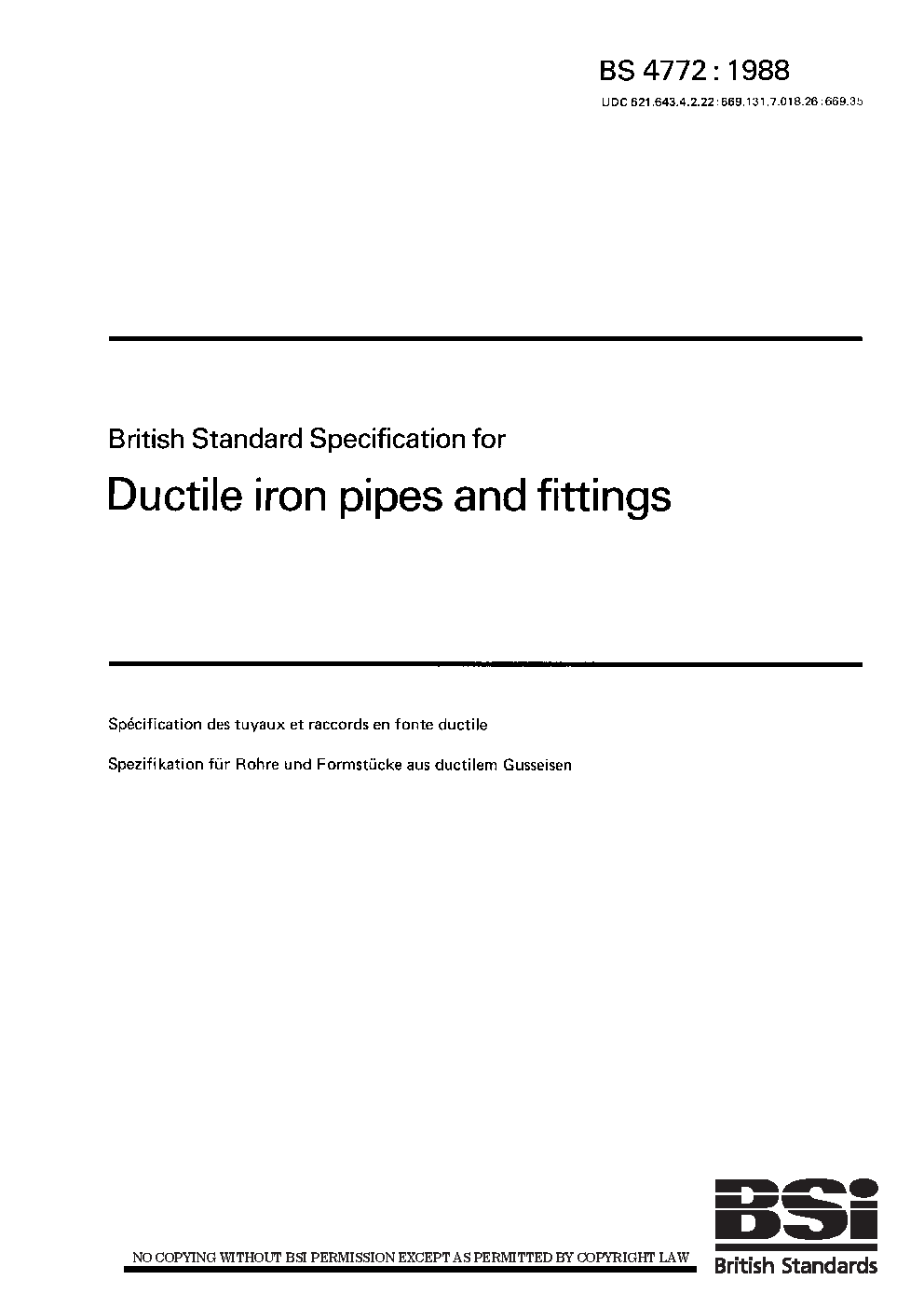 Ductile iron pipes, fittings, accessories and their joints for water pipelines. Requirements and test methods