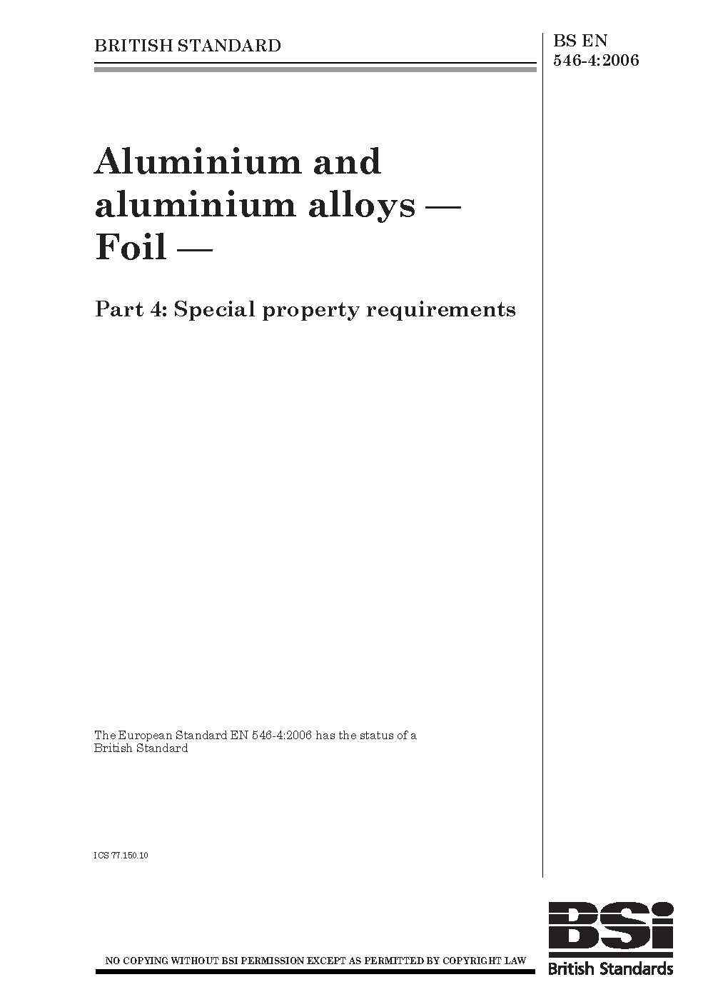 Aluminium and aluminium alloys. Foil Special property requirements