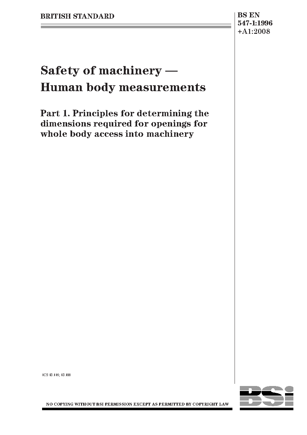 Safety of machinery. Human body measurements Principles for determining the dimensions required openings whole access into machinery