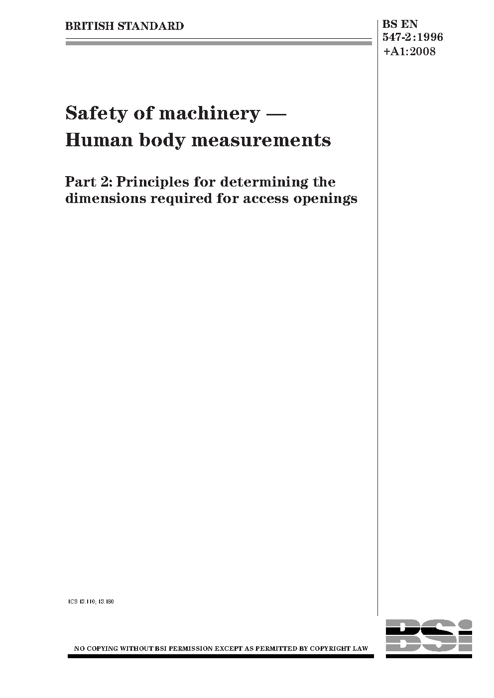 Safety of machinery. Human body measurements Principles for determining the dimensions required access openings