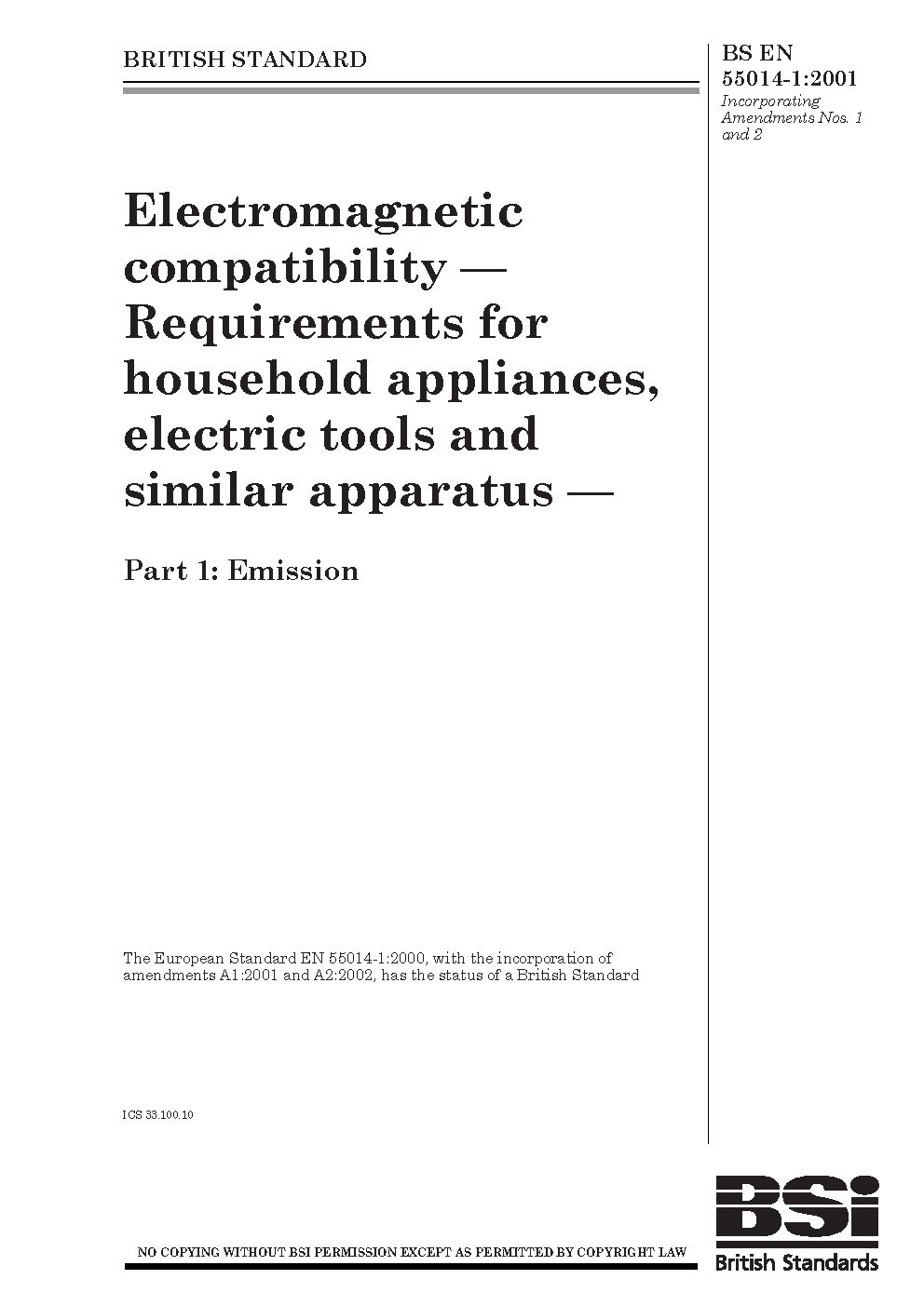 Electromagnetic compatibility. Requirements for household appliances, electric tools and similar apparatus Emission