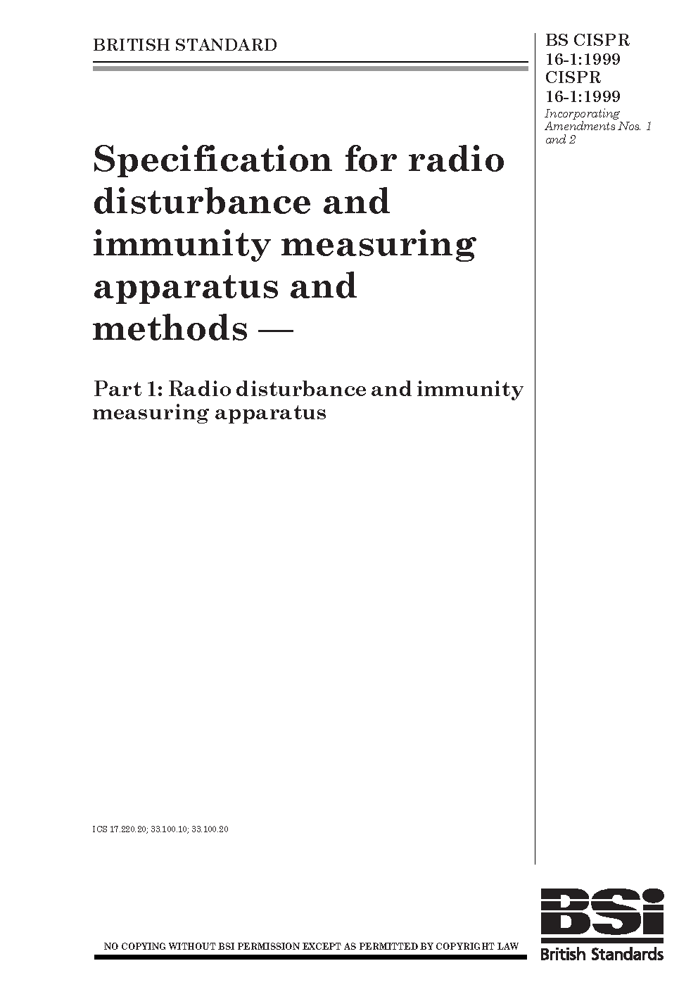 Specification for radio disturbance and immunity measuring apparatus methods Radio apparatus. Ancillary equipment. Radiated disturbances
