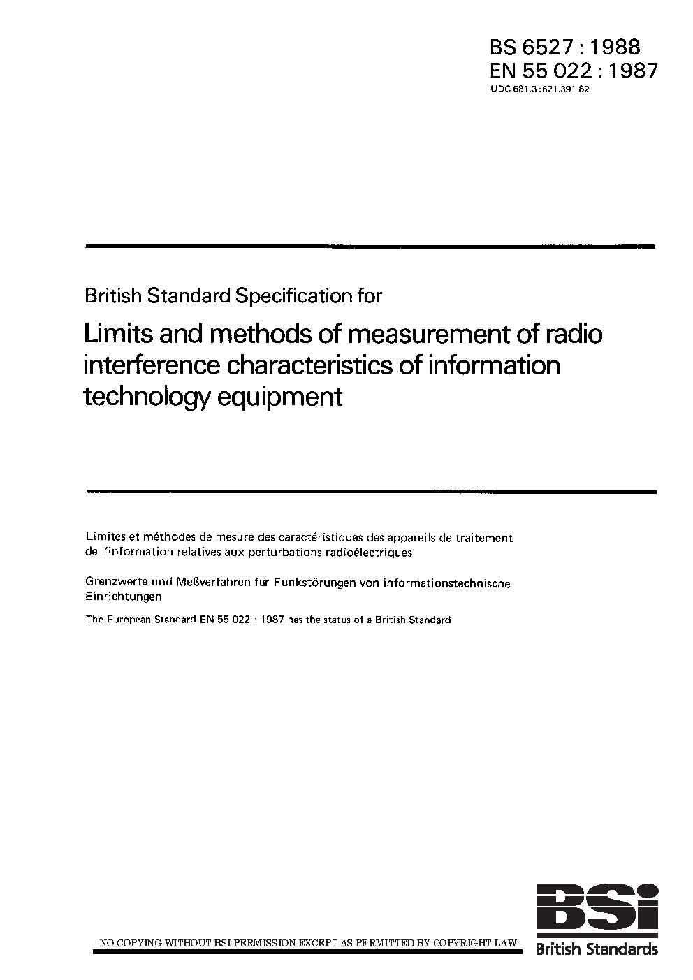 Limits and methods of measurement of radio disturbance characteristics of information technology equipment