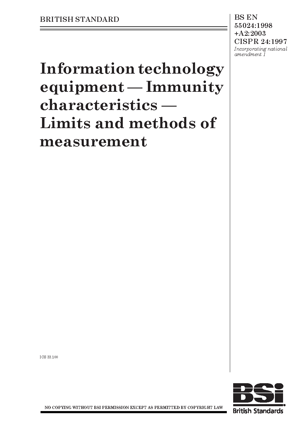 Information technology equipment. Immunity characteristics. Limits and methods of measurement