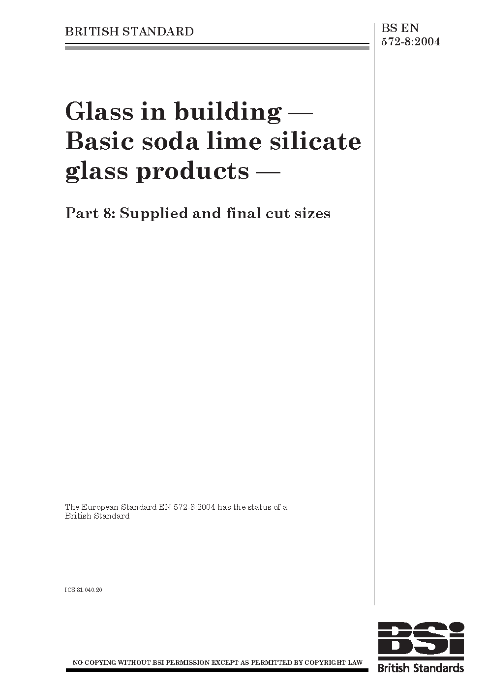 Glass in building. Basic soda-lime silicate glass products Supplied and final cut sizes