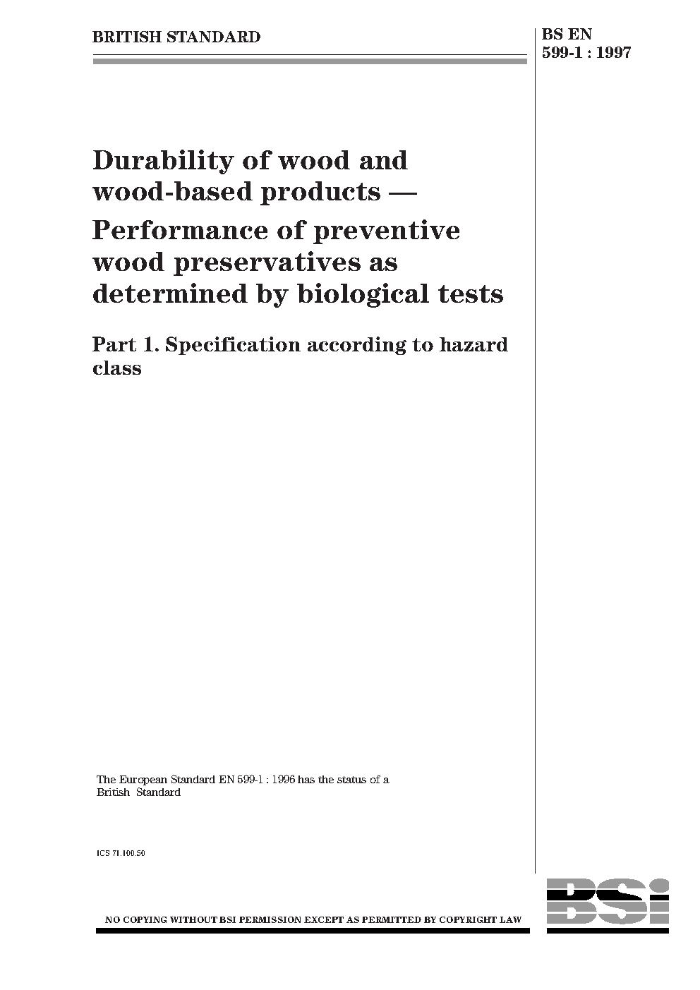 Liquids;Wood preservation;Biological analysis and testing;Durability;Classification systems;Performance;Ageing tests;Quality control;Preservatives;Hazards;Performance testing;Testing conditions;Grades (quality);Type testing;Wood preservatives