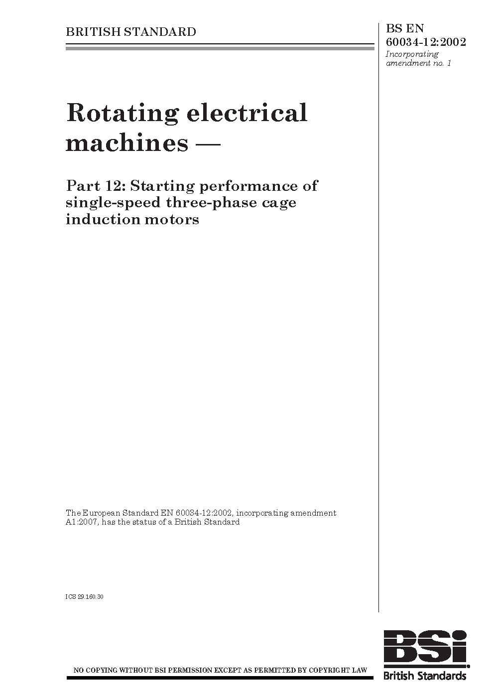 Rotating electrical machines Starting performance of single-speed three-phase cage induction motors