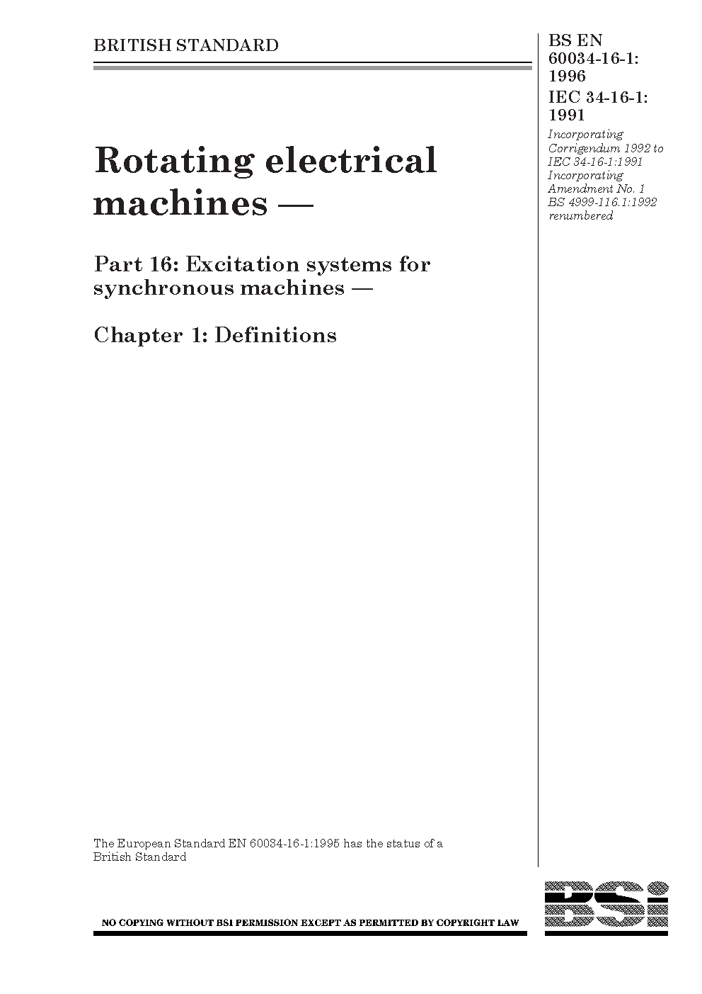 Rotating electrical machines Excitation systems for synchronous machines. Definitions