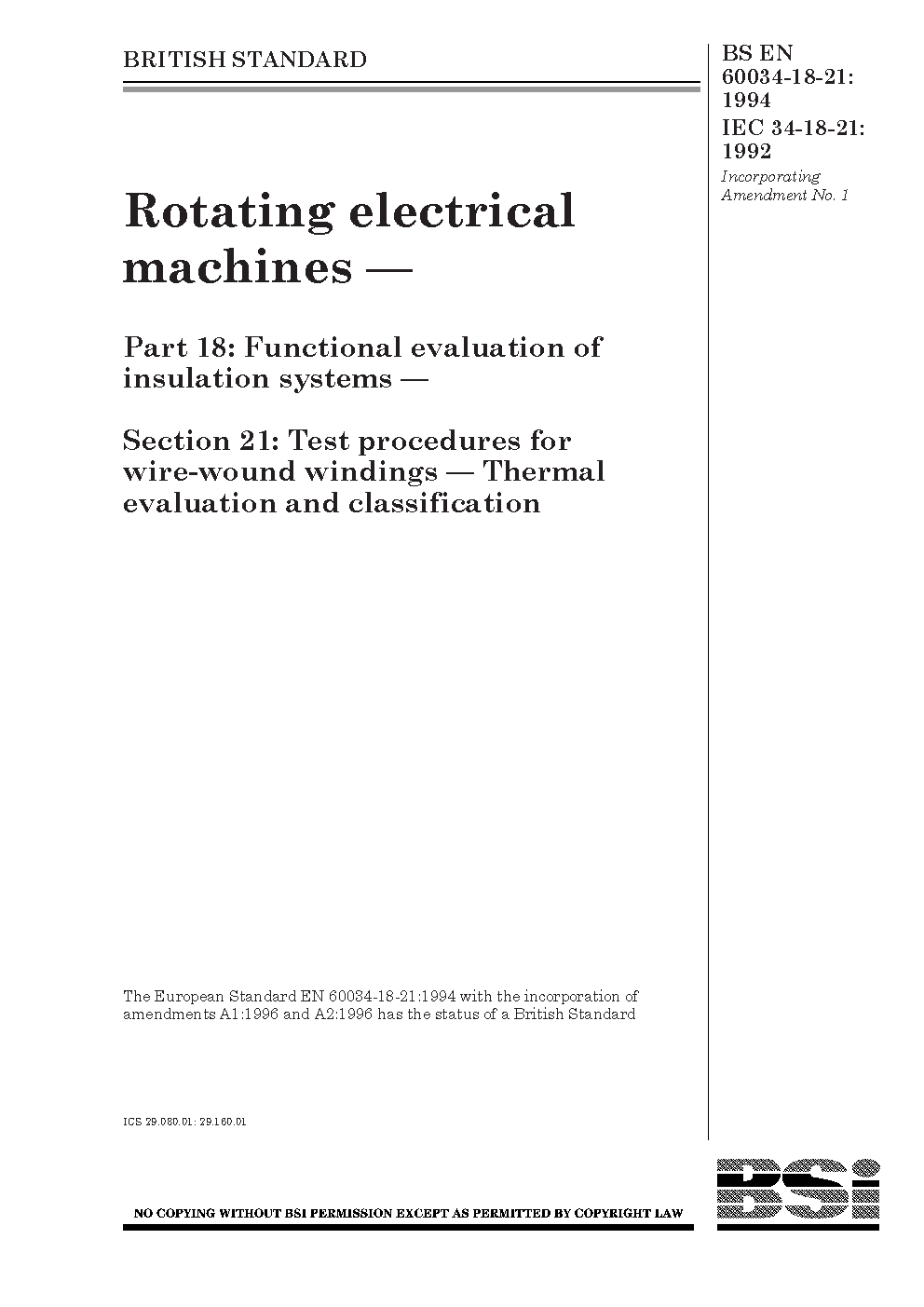 Rotating electrical machines Functional evaluation of insulation systems. Test procedures for wire-wound windings. Thermal and classification