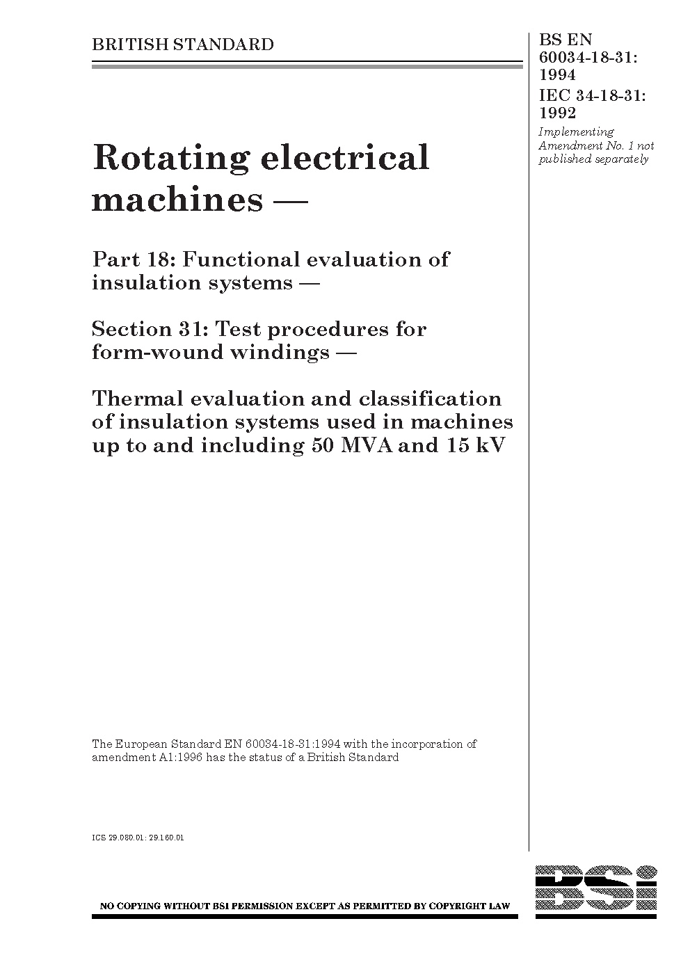 Rotating electrical machines Functional evaluation of insulation systems. Test procedures for form-wound windings. Thermal and classification systems used in rotating
