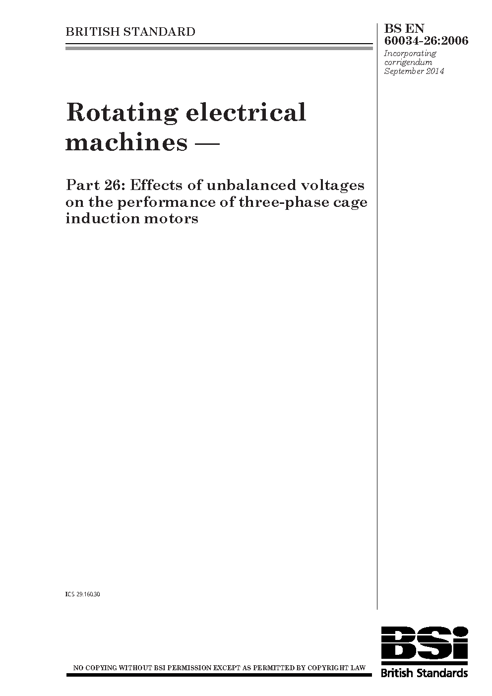 Rotating electrical machines Effects of unbalanced voltages on the performance three-phase cage induction motors
