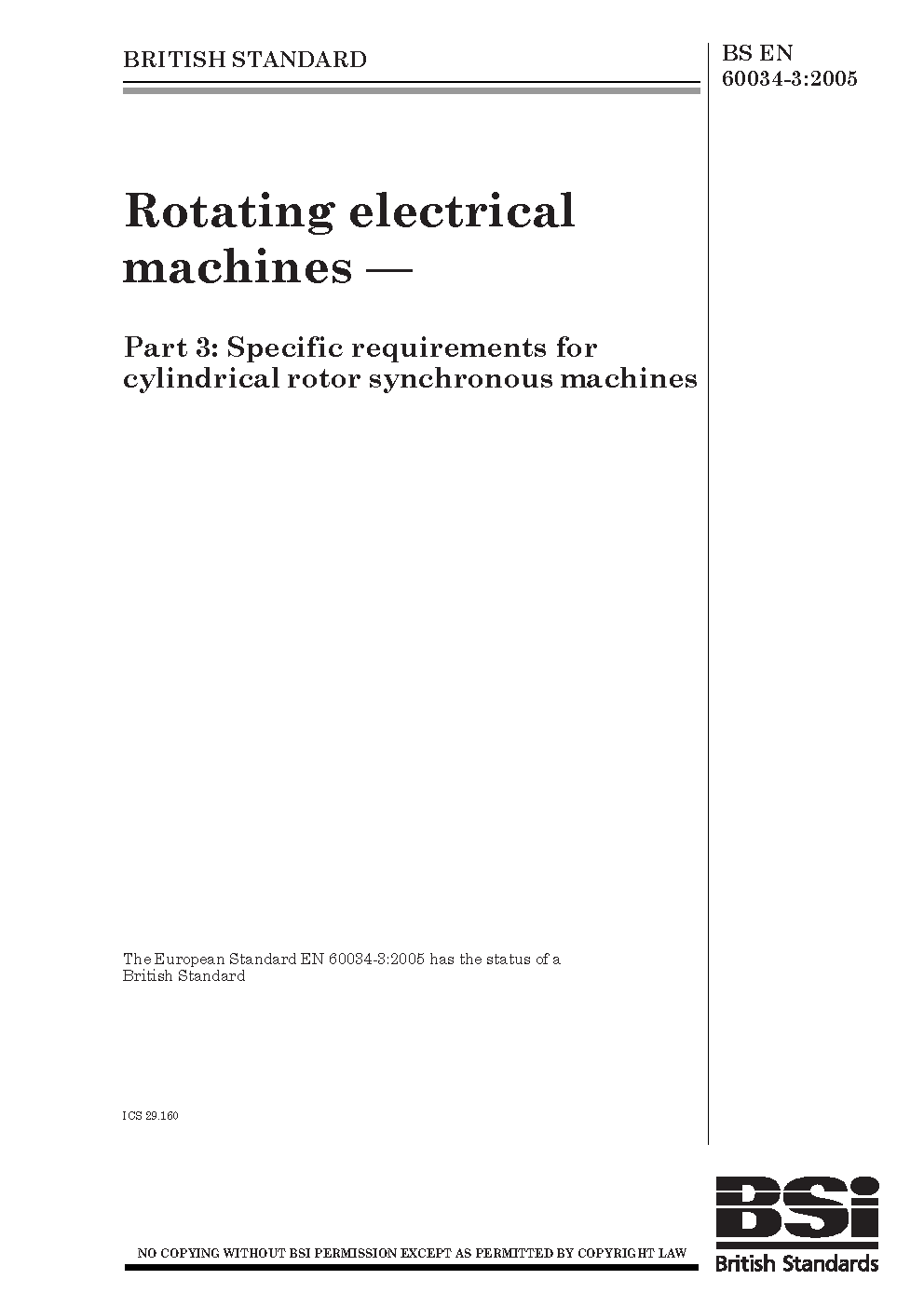 Rotating electrical machines Specific requirements for cylindrical rotor synchronous