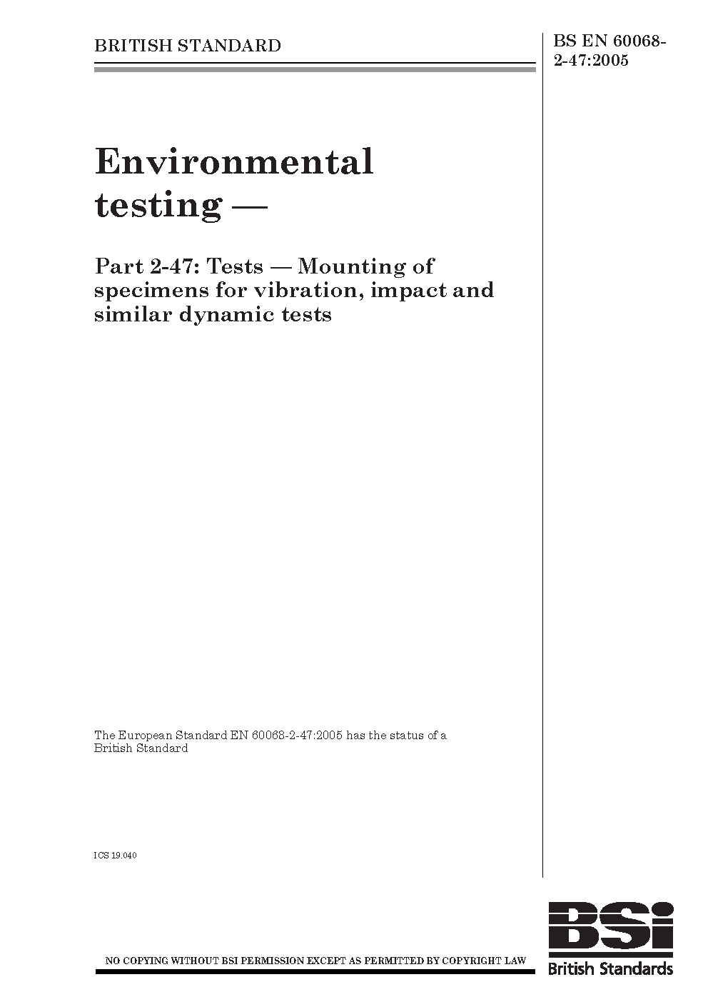 Environmental testing Tests. Mounting of specimens for vibration, impact and similar dynamic tests