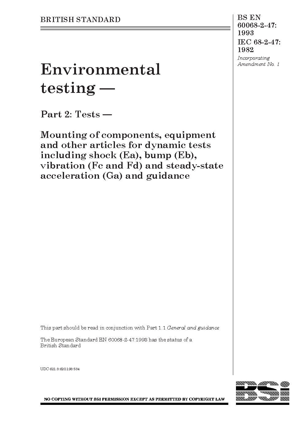 Environmental testing;Acceleration;Dynamic testing;Vibration testing;Fixing;Mechanical testing;Electrical equipment;Seatings;Impact testing;Test equipment;Balancing;Electrical components;Test specimens;Electronic equipment and components