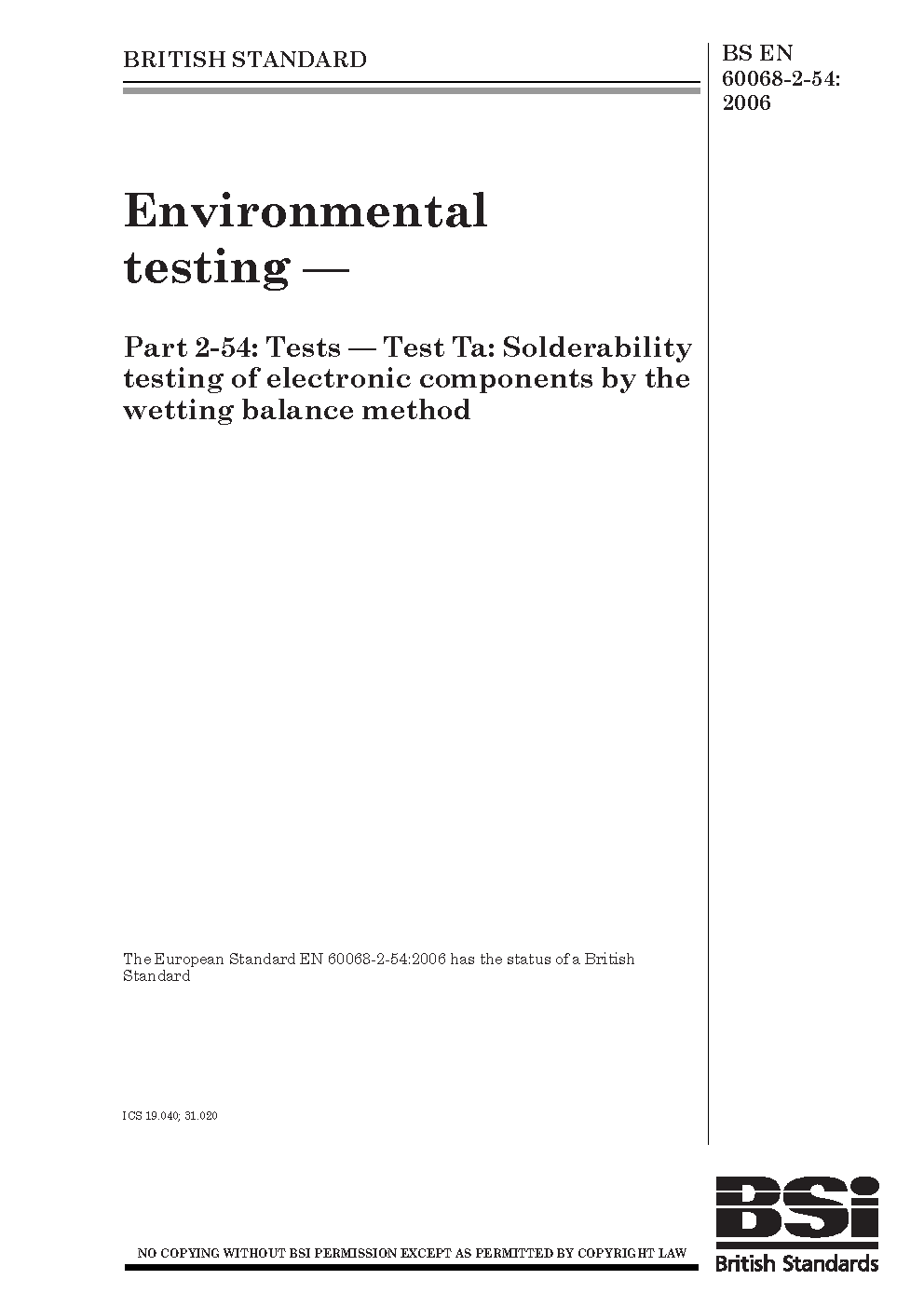 Environmental testing Tests Test Ta: Solderability of electronic components by the wetting balance method