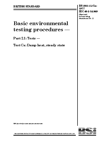 Environmental testing. Test methods Cab. Damp heat, steady state