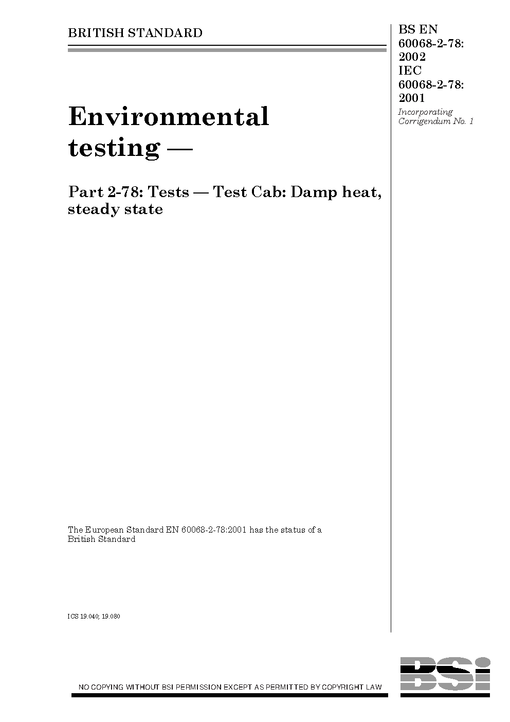 BS EN 60068-2-78:2002