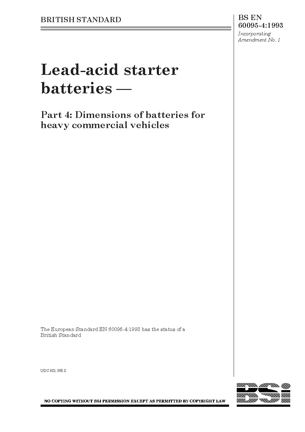Lead-acid starter batteries Dimensions of for heavy commercial vehicles