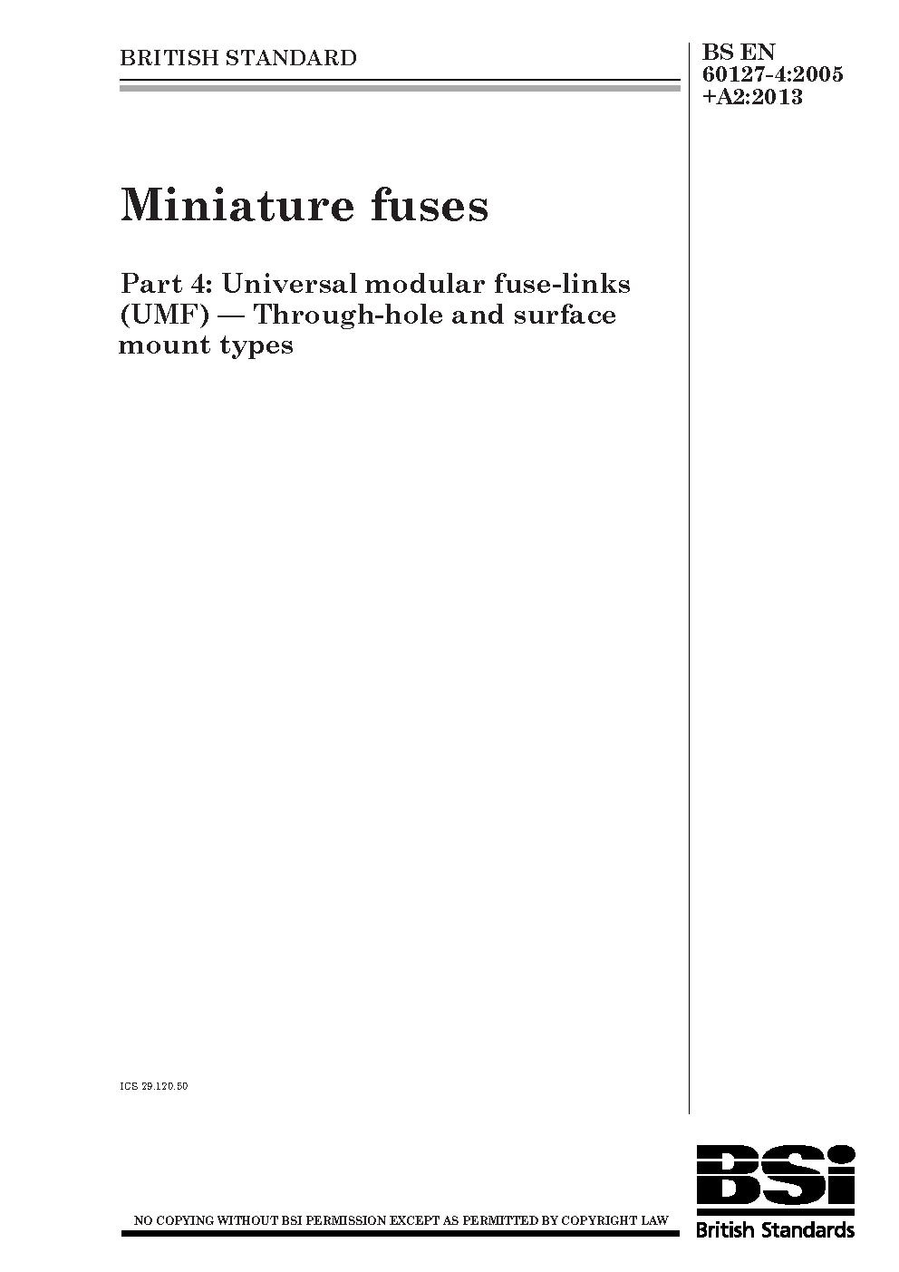 Marking;Dimensions;Miniature;Endurance testing;Fuses;Modules;Resistance measurement;Electric terminals;Mechanical testing;Holes;Temperature-rise limit;Electrical protection equipment;Fuse-links;Thermal resistance;Voltage fluctuations;Testing conditions;Overvoltage;Breaking capacity;Circuits;Electrical insulation;Printed circuits;Electrical components;Soldering;Electronic equipment and components;Bend testing;Electrical testing;Electrical equipment