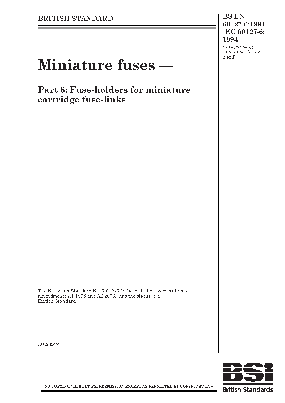 BS EN 60127-6:2014