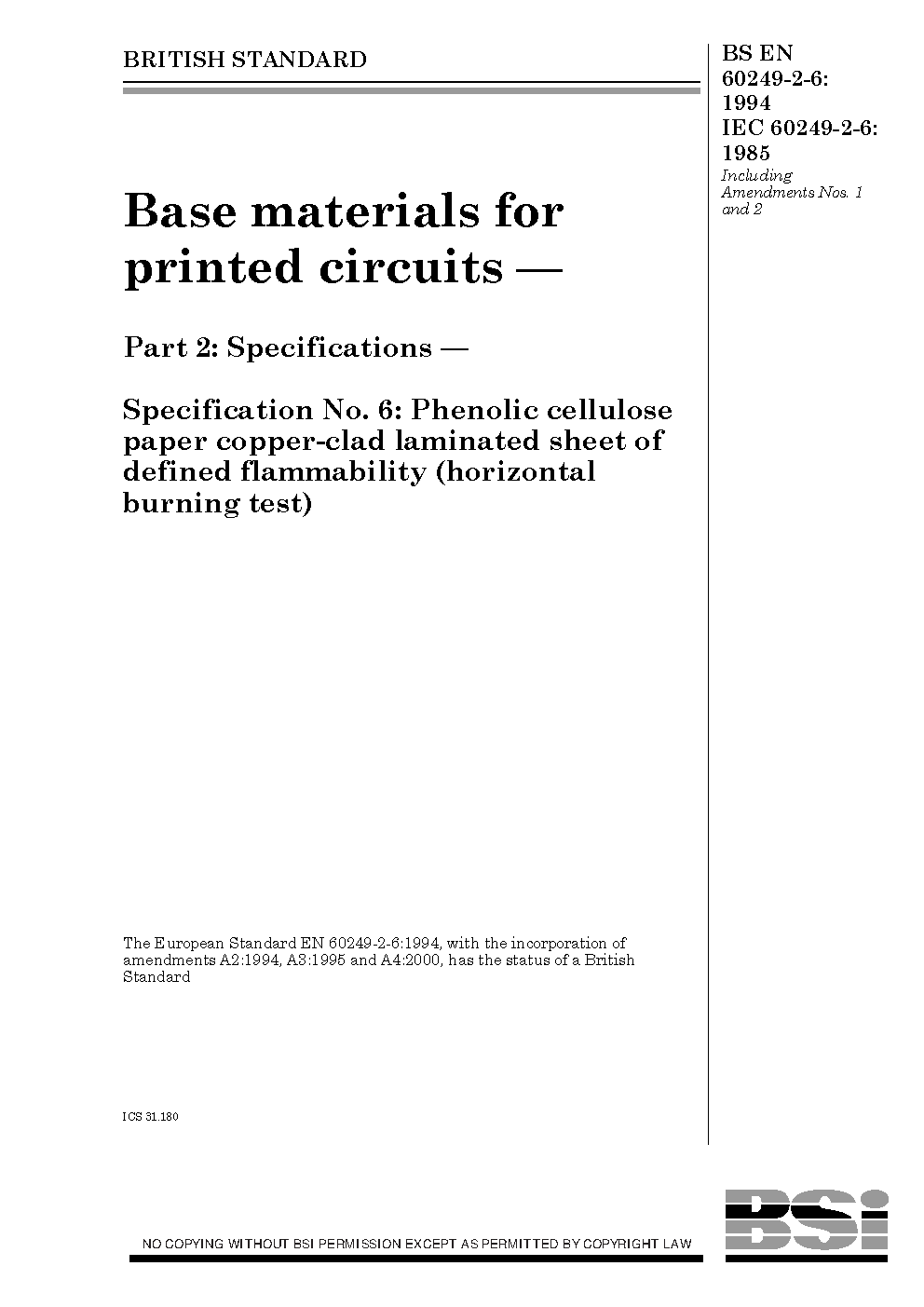 Specifications Specification No.6. Phenolic cellulose paper copper-clad laminated sheet of defined flammability (horizontal burning test)