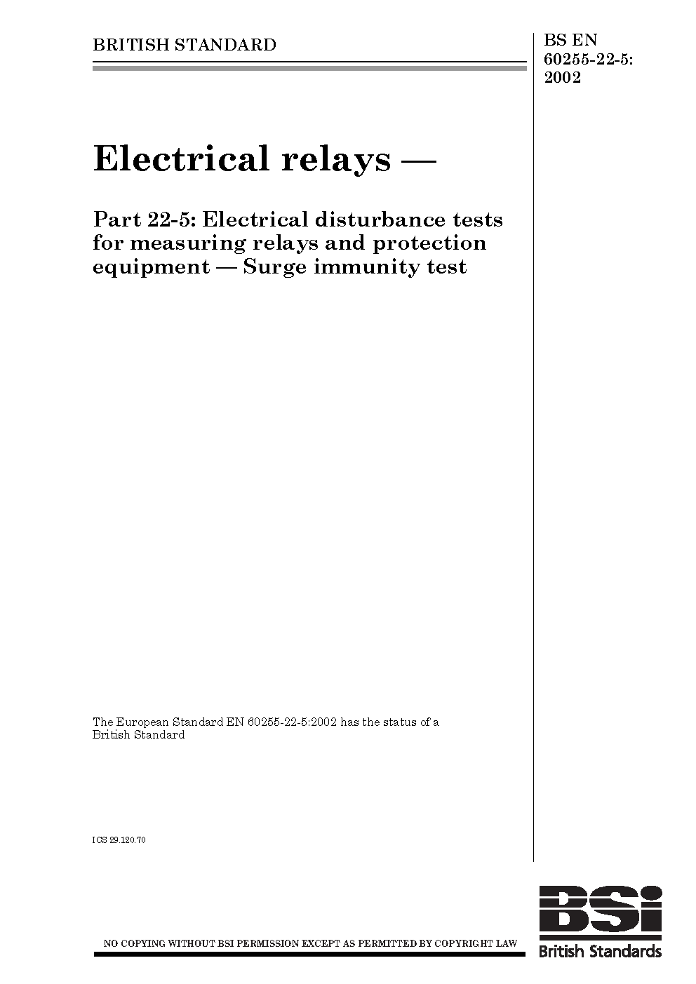 Measuring relays and protection equipment Electrical disturbance tests. Surge immunity test