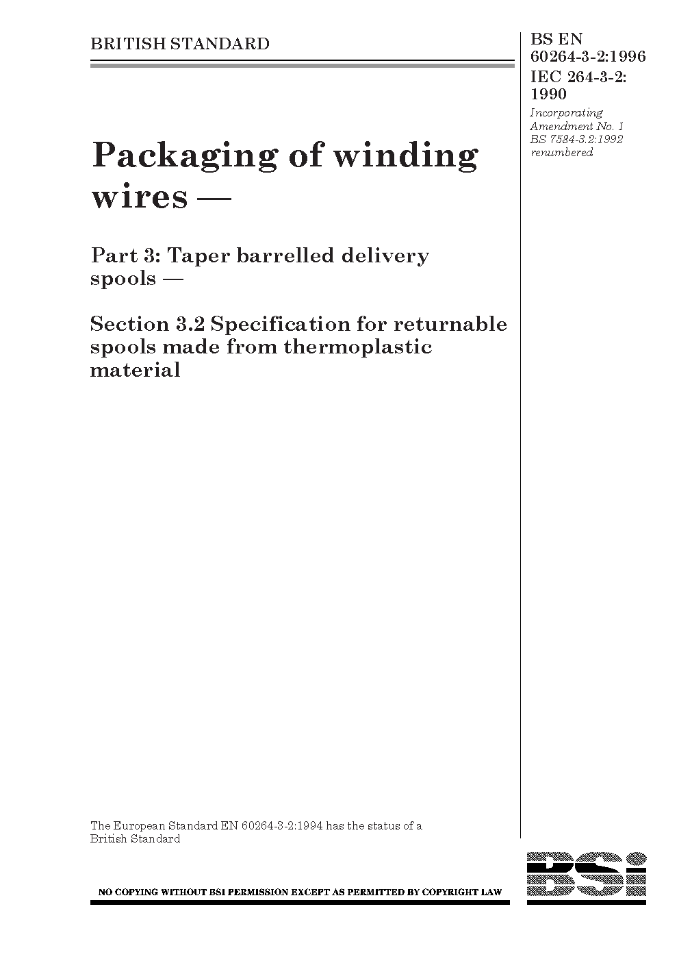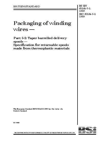 Packaging of winding wires. Taper barrelled delivery spools Specification for returnable made from thermoplastic materials