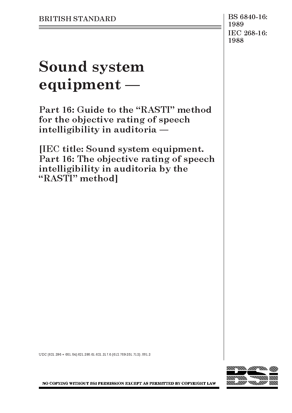 Sound system equipment Objective rating of speech intelligibility by transmission index