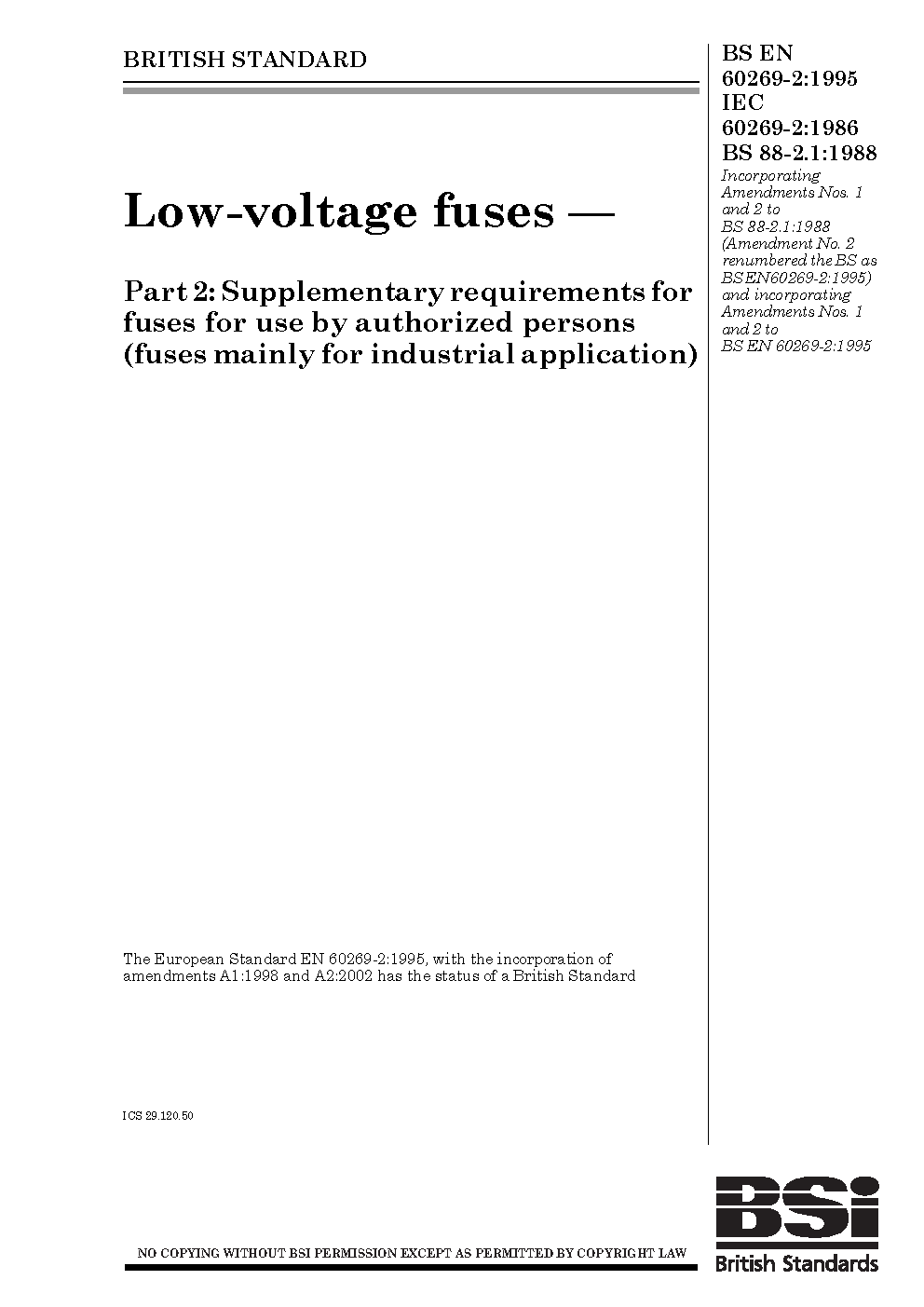 BS EN 60269-2:1995