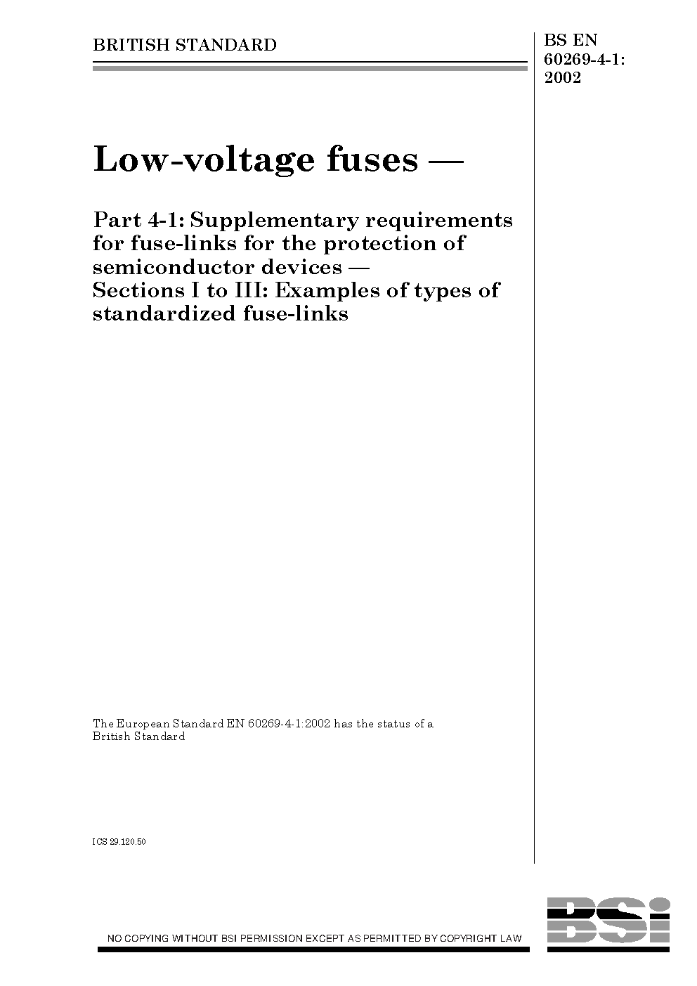 Low-voltage fuses Supplementary requirements for fuse-links the protection of semiconductor devices