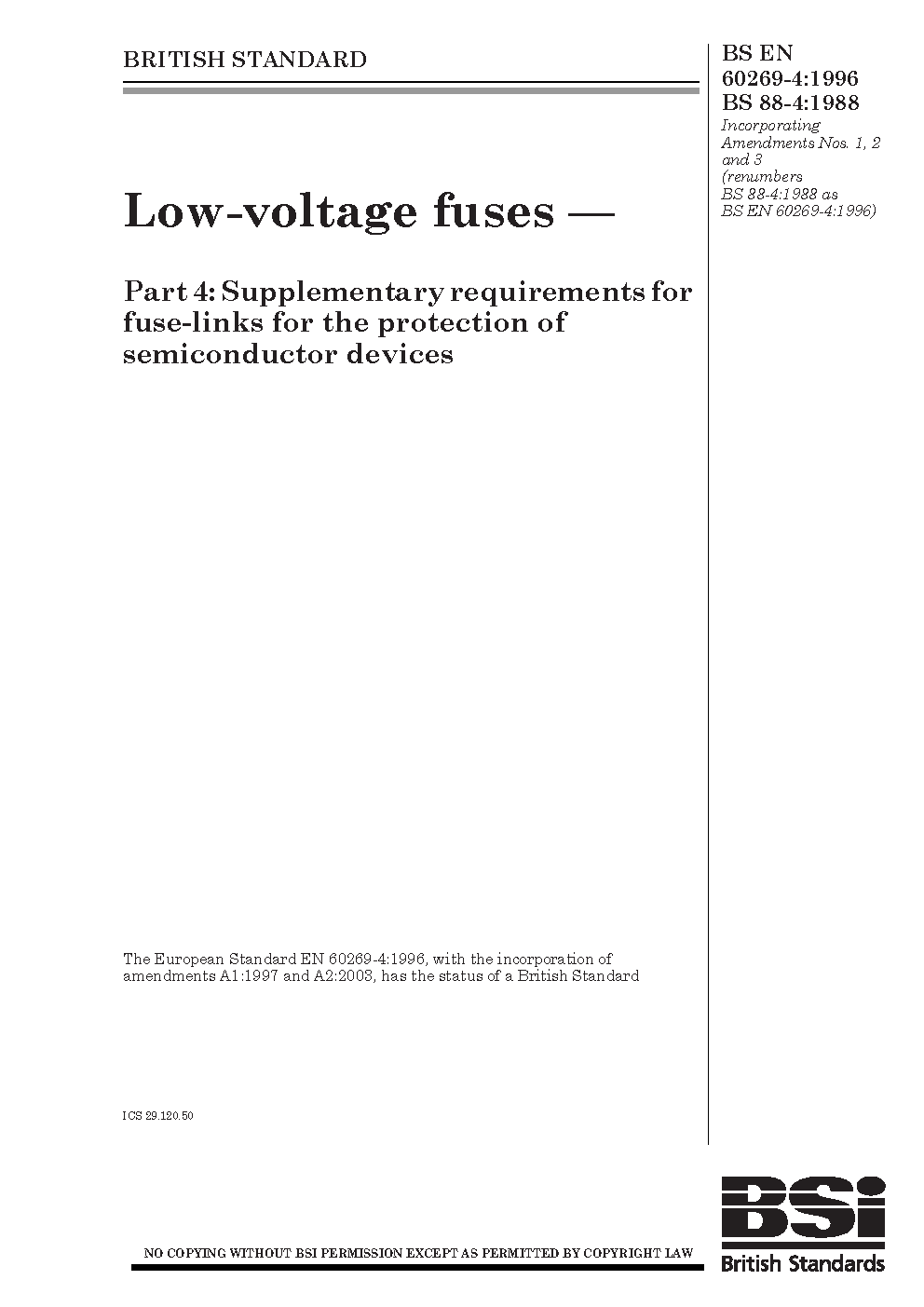 Low-voltage fuses Supplementary requirements for fuse-links the protection of semiconductor devices